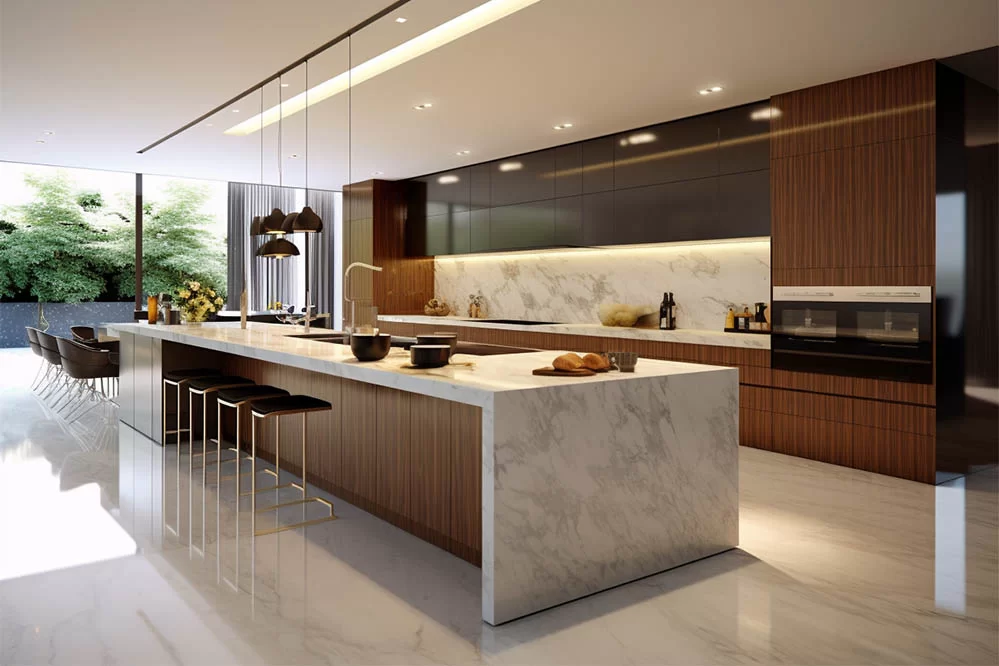 Luxury finishes aren’t just more expensive versions of the same thing. They’re sourced differently, installed differently, and they behave differently over decades of use. They develop character over time rather than simply wearing out. A honed Calacatta marble slab, a hand-applied Venetian plaster wall, or a wide-plank white oak floor doesn’t look worse as it ages — it tells a story.